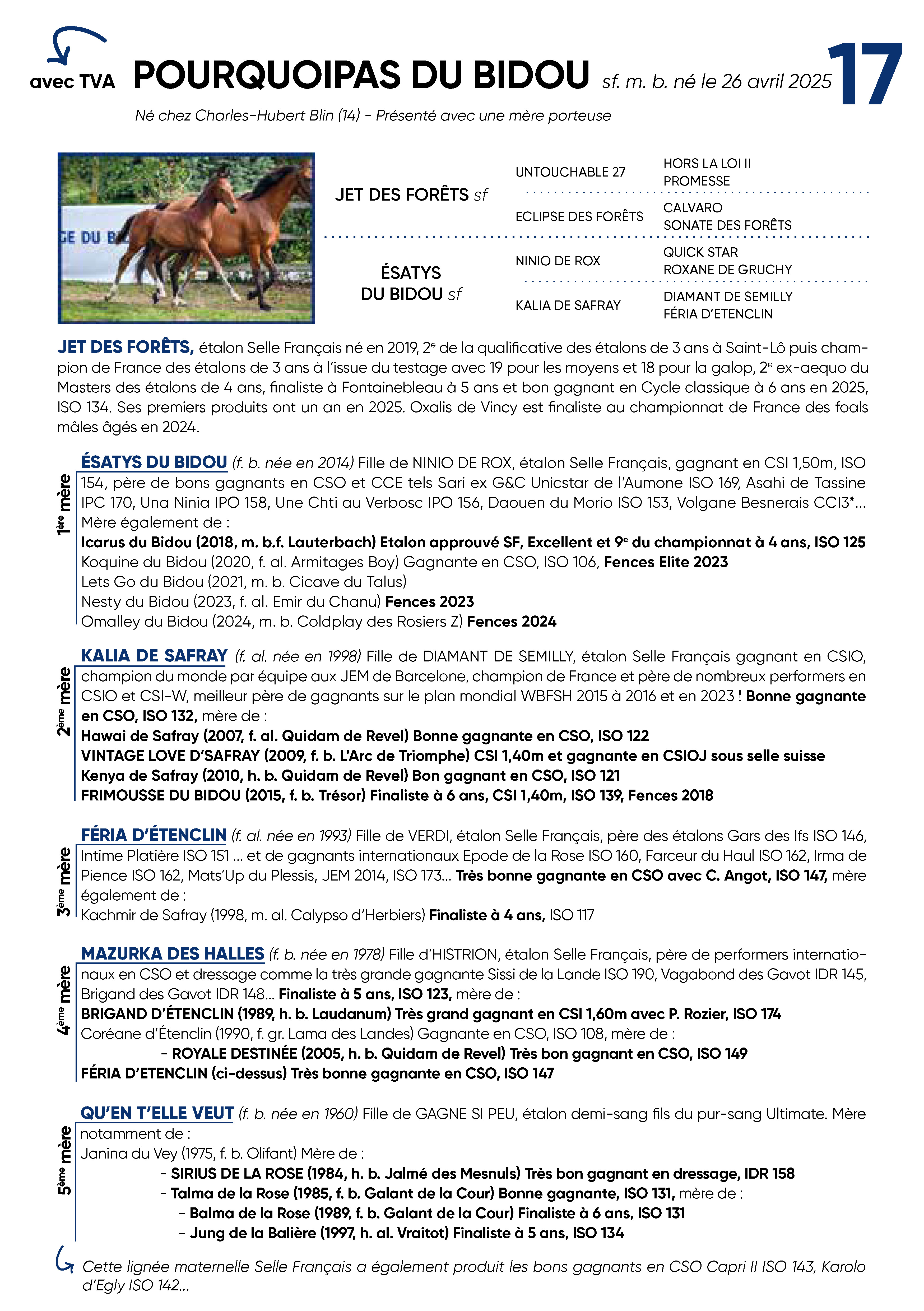 Les enchères sont toujours prises HT.| Jet Des Forets SF | Untouchable 27 KWPN | Hors La Loi Ii SFA |