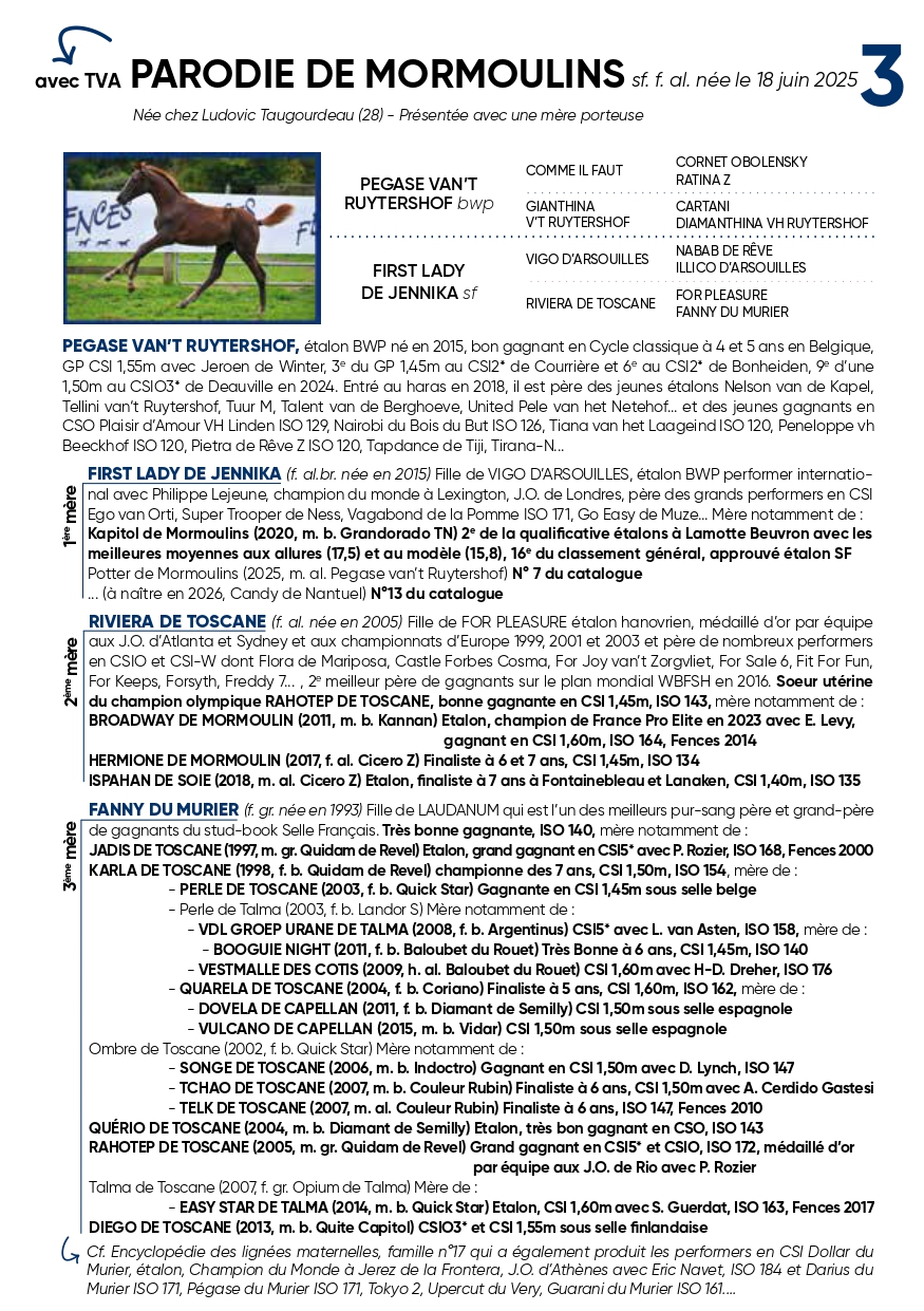 First Lady De Jennika SF | Vigo D'arsouilles BWP | |