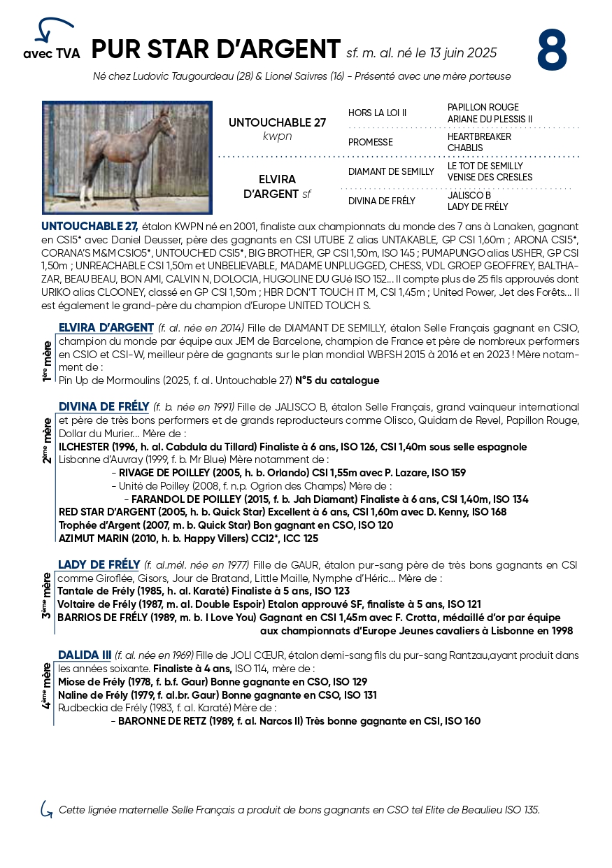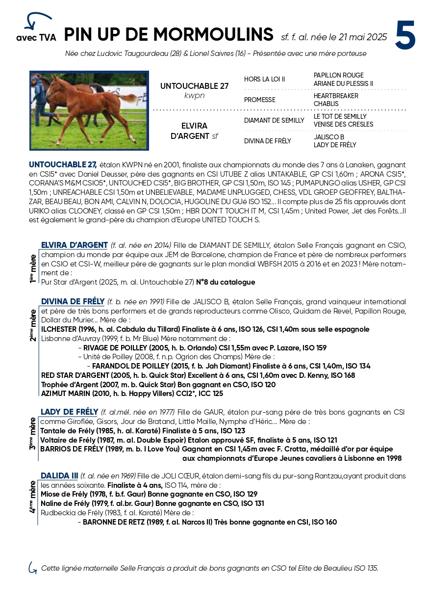 Untouchable 27 KWPN | Hors La Loi Ii SFA | Papillon Rouge SFA |