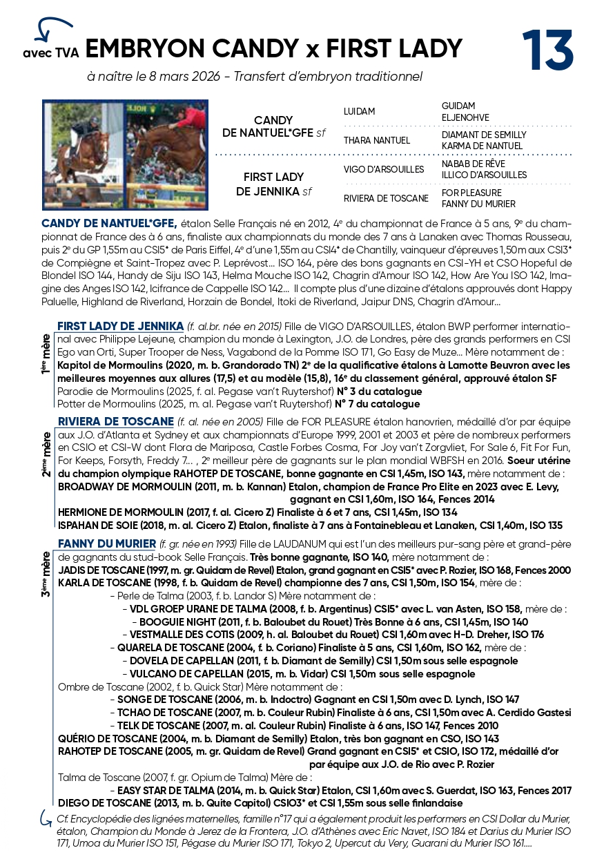 First Lady De Jennika SF | Vigo D'arsouilles BWP | Nabab De Reve BWP |