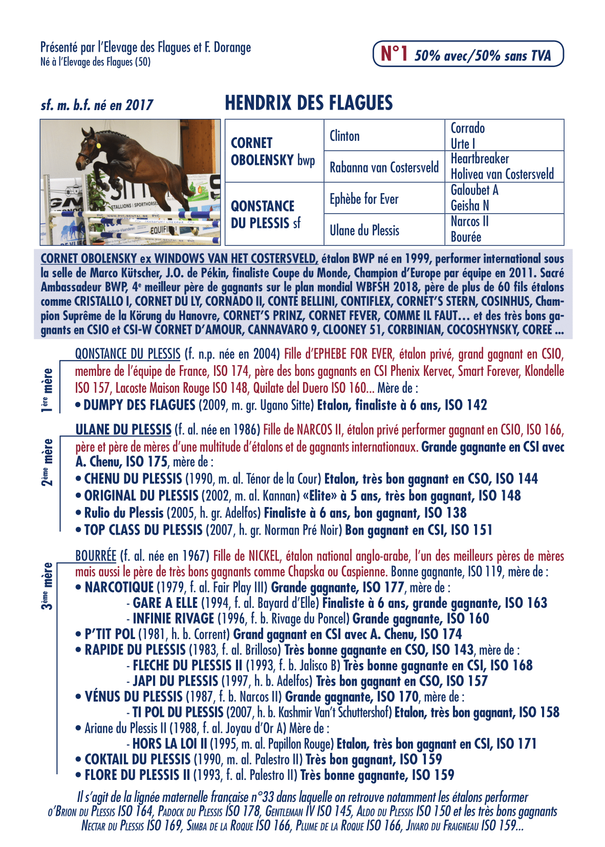 1HENDRIX DES FLAGUES (CORNET OBOLENSKY x EPHEBE FOR EVER)