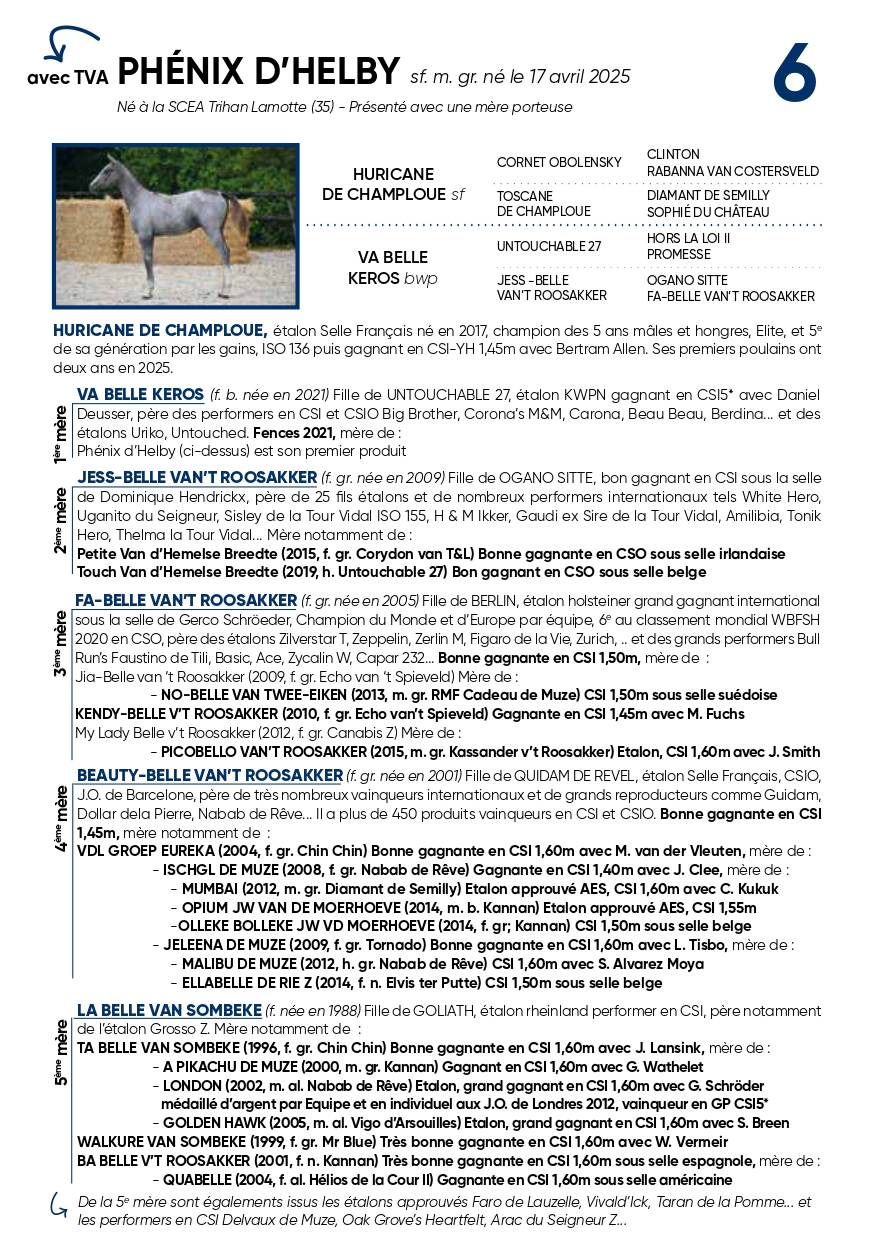 6PHENIX D'HELBY (HURICANE DE CHAMPLOUE X UNTOUCHABLE 27)