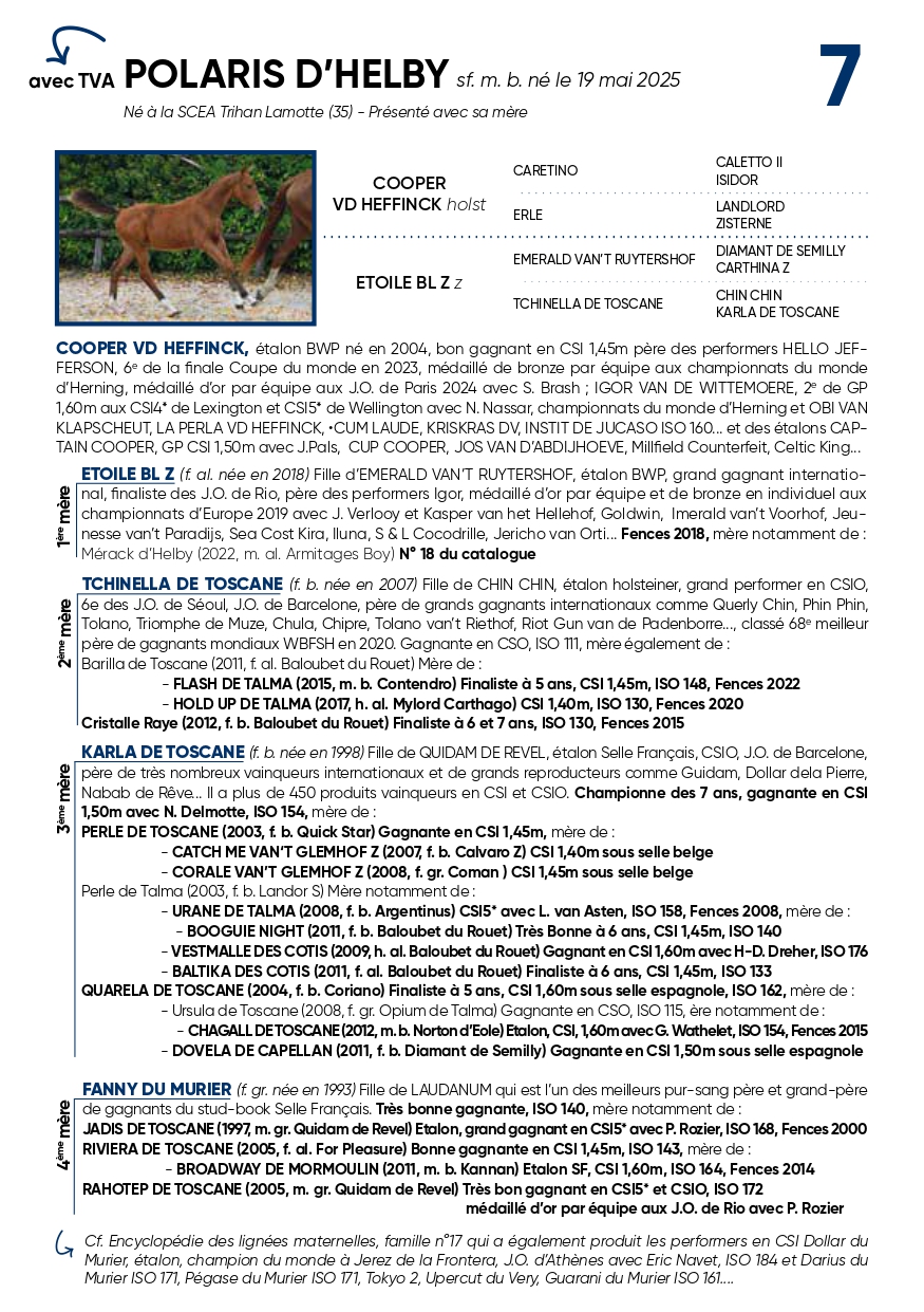 Le fils du très bon père de gagnants COOPER VD HEFFINCK issu de la lignée maternelle du champion olympique RAHOTEP DE TOSCANE et du champion du monde DOLLAR DU MURIER.