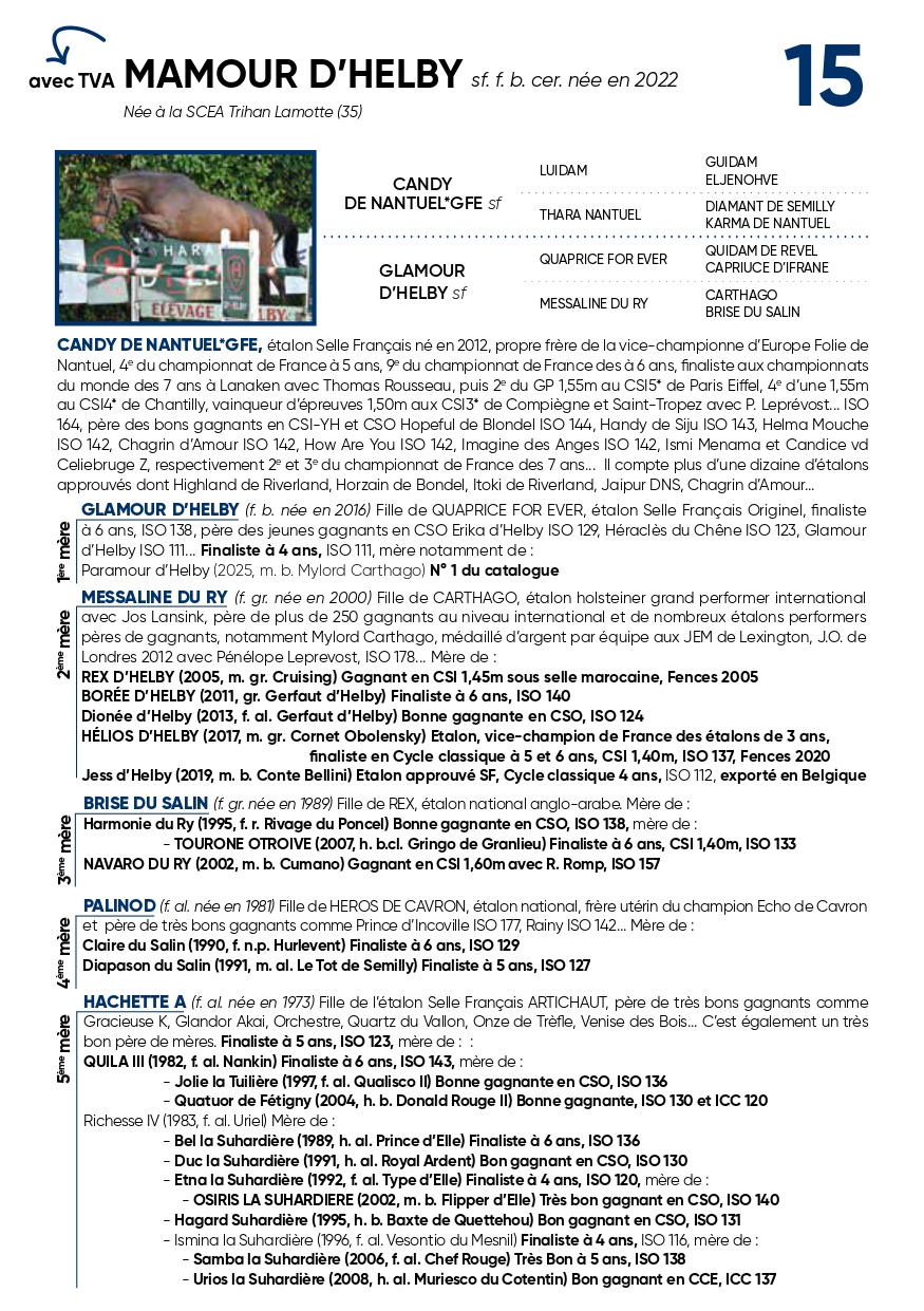 Une fille de la nouvelle star CANDY DE NANTUEL et de la sœur de trois bons gagnants internationaux.