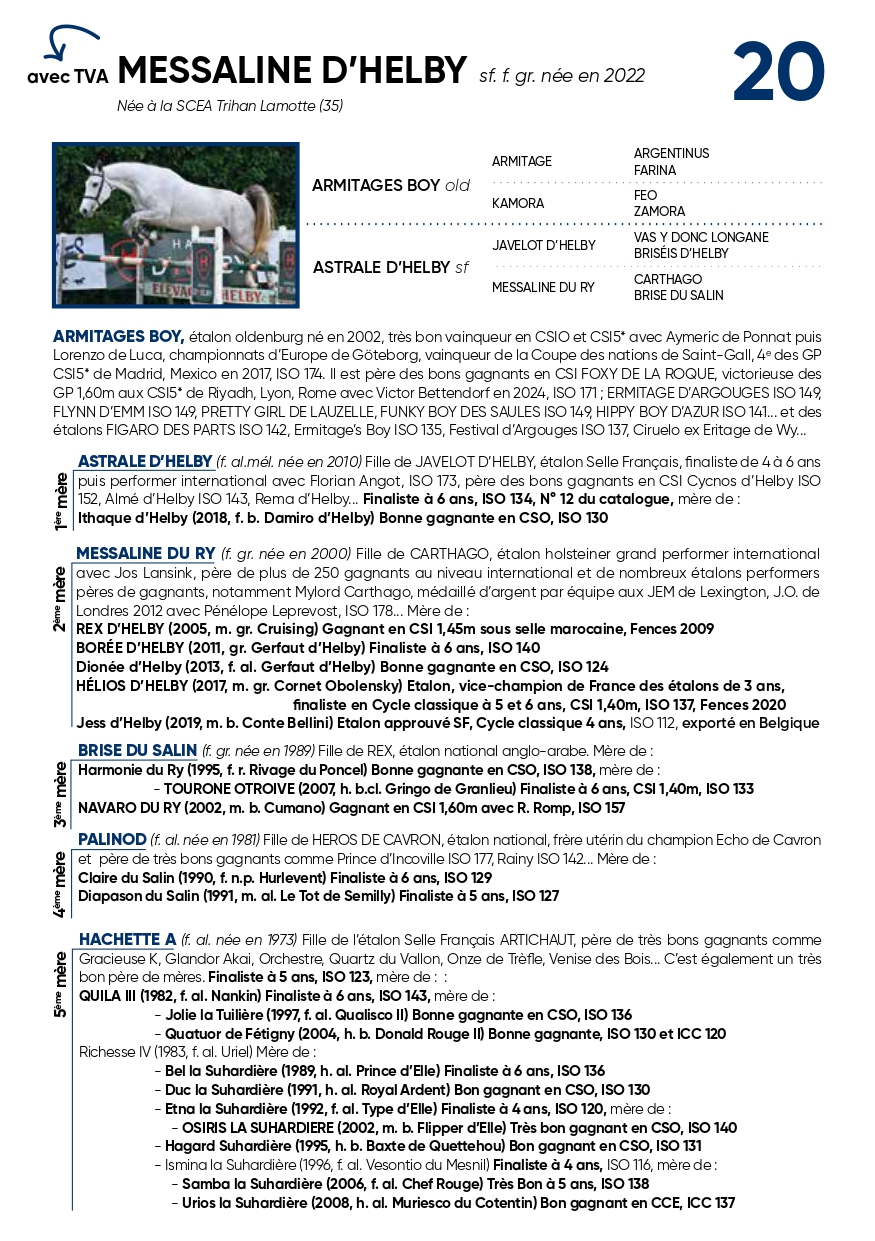 Une puissante fille d’ARMITAGES BOY et d’une bonne gagnante, sœur de 3 gagnants en CSI.
