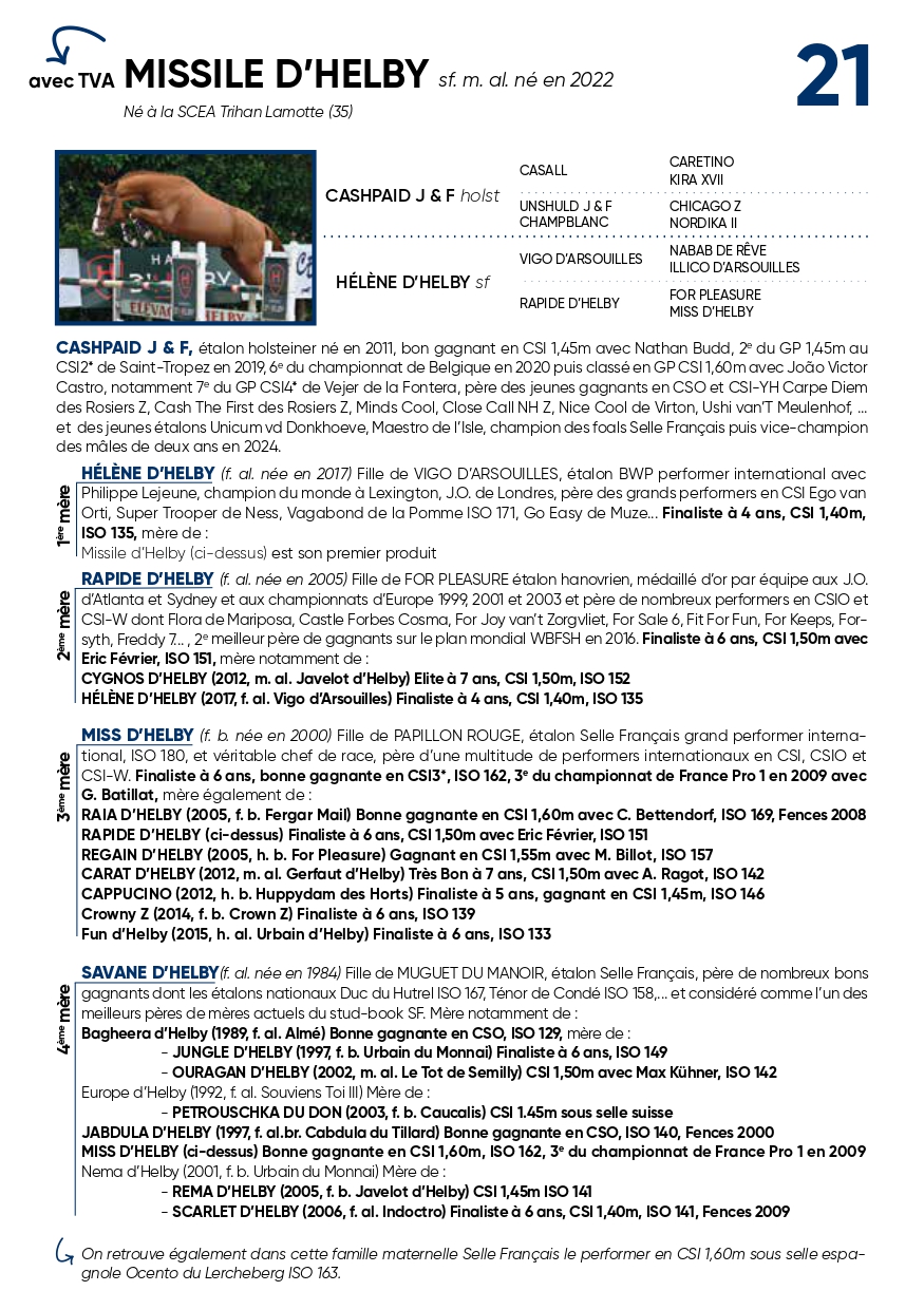 Un fils du phénomène CASHPAID J ET F avec un très beau potentiel à l’obstacle. Ses trois premières mères ont brillé sur la scène sportive.