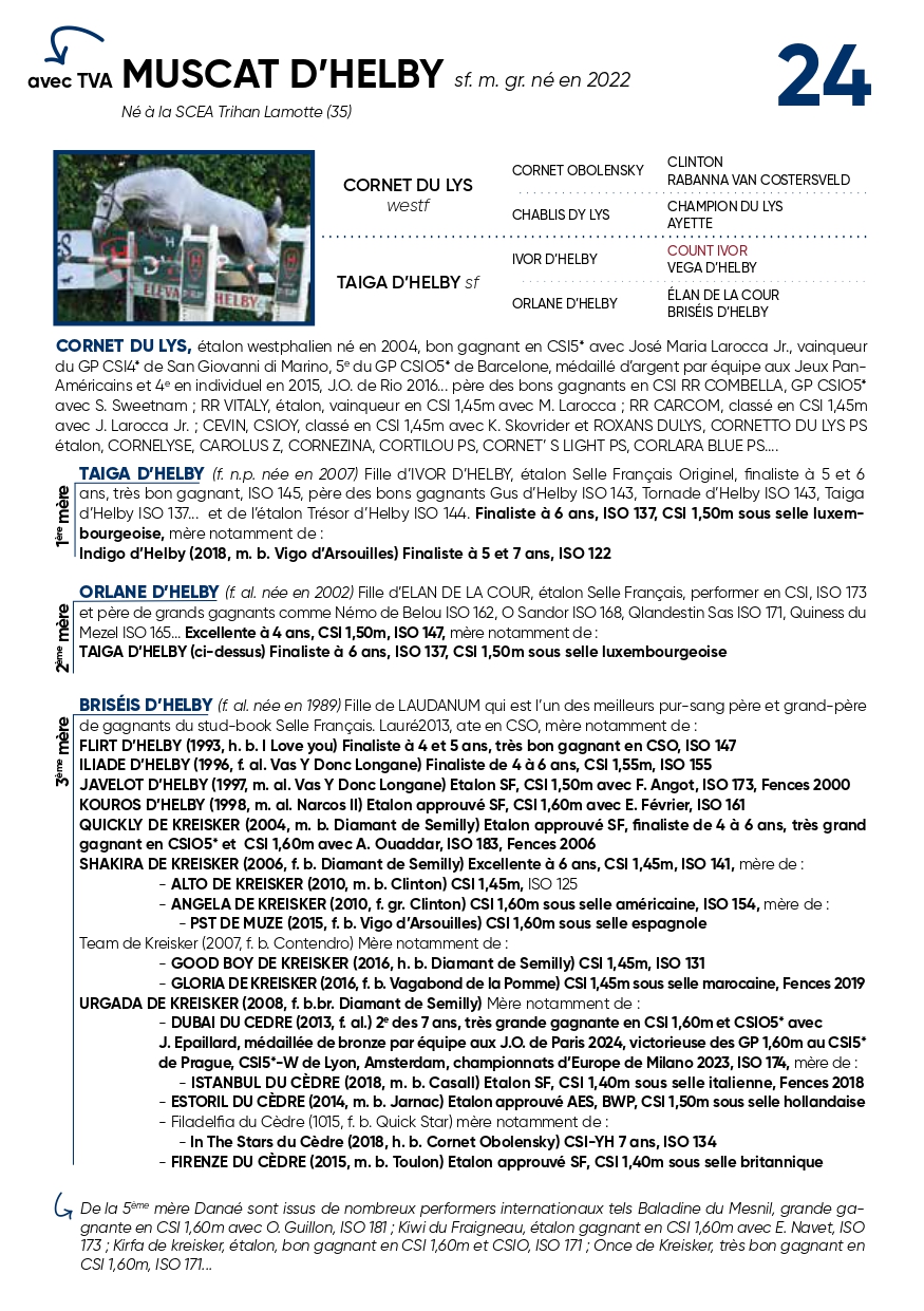 Un fils du très apprécié CORNET DU LYS et d’une mère gagnante en CSI, nièce du phénomène QUICKLY DE KREISKER.